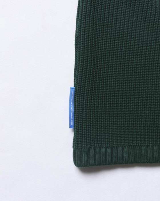 7ゲージの片畦編みのニット。 糸を5本取りすることで度詰めに仕上げています。 防寒性及び耐久性に富みます。 上部が褪色したようなフェード加工が特徴です。 左胸にミニワッペン、背面裾にデザインラベルが付きます。 ヴィンテージのニットのような加工感が特徴です。 MATERIAL:
