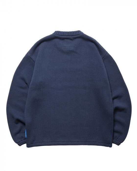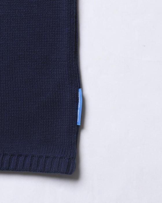 ロゴはインターシャ編みにすることでロゴ部分に厚みを出さない工夫をしています。